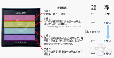 特别是在插拔更换、增减硬盘时,支持热插拔,无需断电,就如同U盘般可以直接热插拨,整个过程如行云流水,需要就插,不需要就拨,挥洒自如。