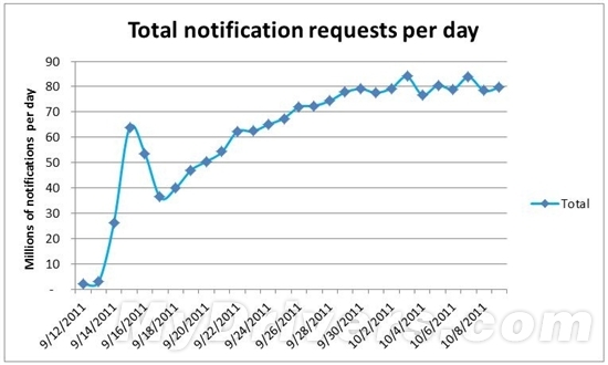 每天发送到Windows 8开发者预览版的通知数量