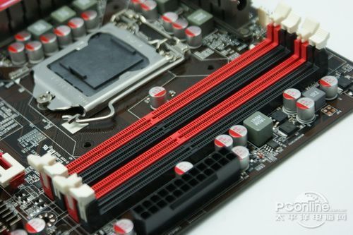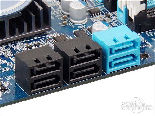 主板提供了4条内存插槽,支持最大16GB容量的DDR3 1333双通道内存,磁盘性能上主板则提供了2个SATA3.0接口和4个SATA2.0接口。