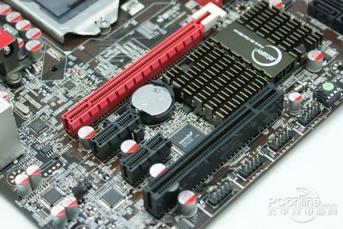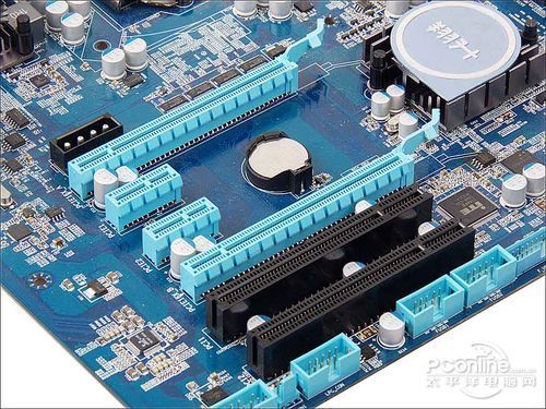 主板提供了一条PCI-E 2.0 x16显卡插槽、两条PCI-E x1及一条PCI插槽,不支持双卡,不过考虑到这款主板的价格和市场定位,应该不会成为一个问题。