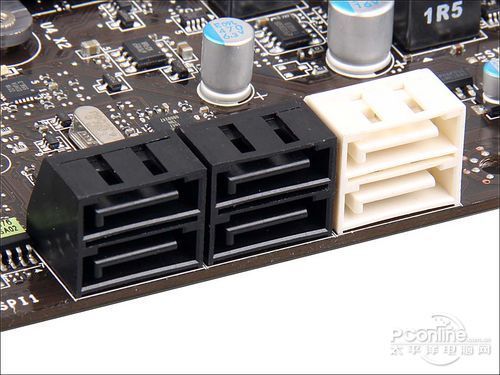 微星 Z68MA-ED55提供了4个黑色的SATA2接口以及2个白色的SATA3接口,完全能满足用户对于存储设备的需求。