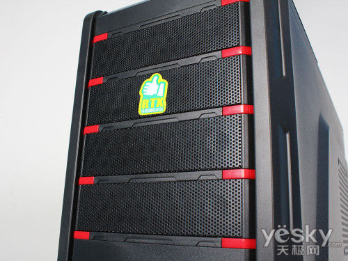 鑫谷 走线王C2机箱的整体外观设计融合了大量机械设计元素,粗犷的线条硬派的设计使机箱的整体效果更巨个性,而且机箱还采用了多种高端机箱中经常使用的设计,如侧板大面积金属防尘网、免工具安装设计和机架全红化处理。在散热设计方面也属不错,以大量金属冲网为基础,配合前后两把散热风扇形成一个散热效率更高的机箱内风道,使机箱的整体散热效率大有提升。
