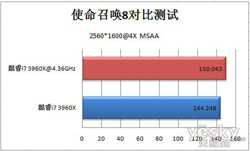 酷睿i7 3960X在使命召唤8中平均帧数为114帧,最小帧数为60帧,最大帧数为255帧。