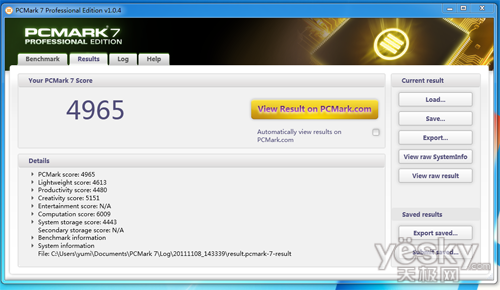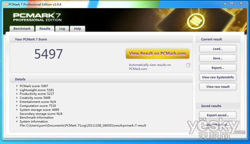 PCmark7针对PC系统进行综合性能分析,以分数展示出系统实际性能。PCmark 7包含7个不同的测试环节,总共25个独立工作负载组成,涵盖PC日常应用的方方面面。