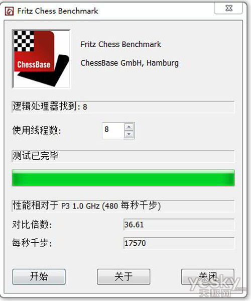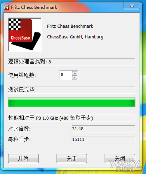 由于Fritz Chess Benchmark现有版本不支持8线程以上的处理器,所以我们采用8线程进行测试。