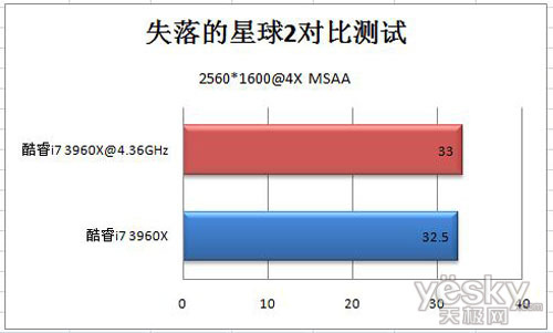 酷睿i7 3960平台在失落星球2测试中,平均帧数为32.5帧,能够流畅进行游戏。