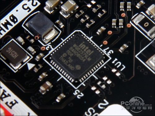 华硕 P9X79 Deluxe采用了双网卡设计,其中下方的RJ-45接口由RTL8111E芯片提供,这款芯片工艺先进,支持最新的节能标准,性能也比较稳定可靠。