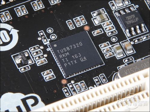 此外还有一个不容错过的就是,这款主板采用了崭新的USB3.0芯片,这是德州仪器的TUSB7320双口USB3.0主控芯片。