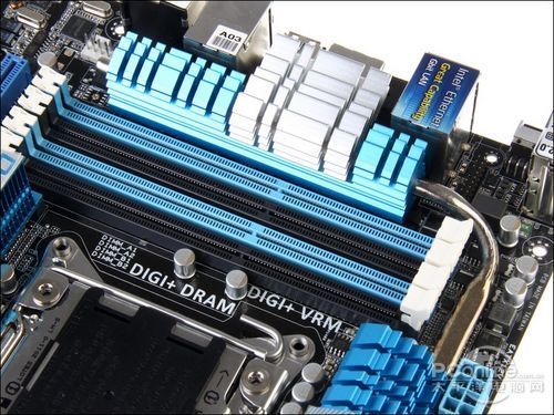 这款主板采用第3代数字供电技术,不仅CPU部分的供电是数字供电,连两侧内存插槽都分别设有2相数字供电,由华硕的数字供电芯片控制。
