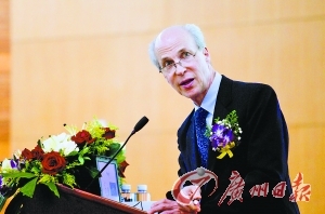 罗杰·大卫·科恩伯格教授在演讲。 记者庄小龙 摄