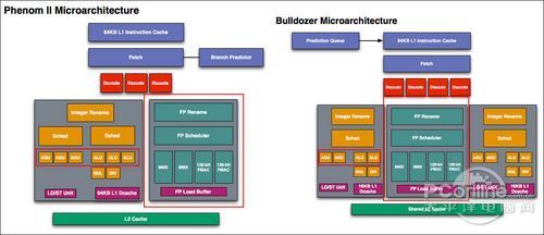 K10和推土机微架构比较(单个核心,点击图片放大)