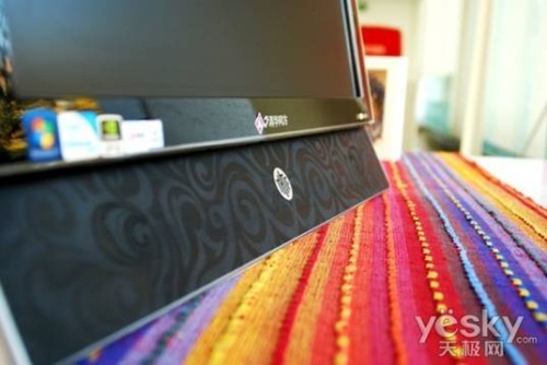清华同方一体机精锐V41-03采用了黑色钢琴烤漆风格前面板,最吸引人的就是屏幕下方的印花设计,艺术化的设计让清华同方一体机V41-03成为家庭中的一个亮点。配合大弧度圆弧后壳,能很好的融入各种家居风格。背部支撑架采用全金属三角框架,标准力学结构保证这款一体机放置平稳,值得一提的是,其背后采用标准壁挂接口,用户可自由配备任何壁挂框架。据测试,该机符合大气流动学的散热效果也是同级别产品中处于领先地位。强力散热功力也为用户带来更加安静的使用环境,据数据表明,清华同方一体机V41-03空载状态下,几乎感觉不到任何噪声。