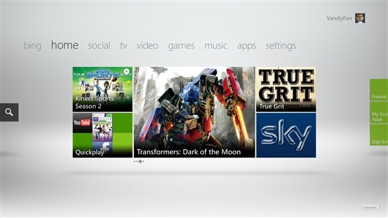 Xbox 360新用户界面明天发布微软计划于本周二发布新的Xbox 360用户界面,集成了Bing搜索及游戏云存储,为流动搞基提供方便(索尼的PlayStation Plus也有类似功能):