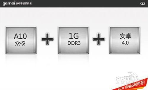 歌美G2的配置是1.5GHz高主频A10众核+1GDDR3内存,MALI400的独立GPU功耗也非常低,是一款很出色的游戏平板,从价格来看,性价比也很高,无论是游戏还上网、上QQ速度都非常快、非常流畅。歌美后续还会升级Android 4.0系统,对于自身配置为1G内存的G2在发挥Android 4.0系统性能方面将更有优势。