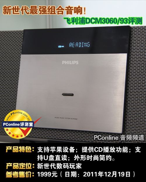 但组合音响只是在沉默,一直没消失。经过全面的升级,时下的组合音响已经成为一种能让你脱离电脑也能听MP3,接入iPhone还能充电,听电台节目无需额外用收音机,甚至还能放入传统CD播放的全能设备……而今天,我们面前的飞利浦DCM3060/93就是一个好榜样。