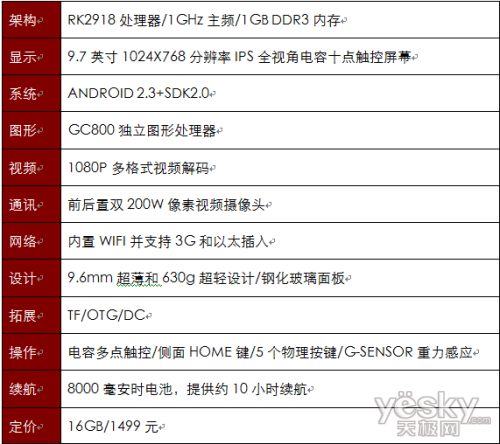 N90采用顶尖的十点触控技术,能够实现双手十个手指同步操控,配合钢化玻璃面板的极佳透光性和操作灵敏度,保证了屏幕的视觉表现力和操控手感。内置的8000毫安时超大容量电池使整机续航最长可达10个小时。前后双摄像头提供拍照、摄像和视频通话等各种实时影像应用。目前原道N90的官方报价为16GB/1499元。