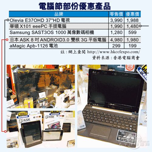 这次电脑节虽然已有不少优惠产品,不过毕竟部分产品之前已升过价,未必相对过往电脑节价格更低,反而平板电、Notebook、记忆卡这三项产品,价格却是前所未有的低价,如有兴趣买这三项产品,在电脑节中相信必能觅到心头好。[返回香港站查看更多]