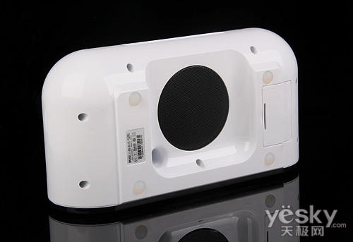 电池仓设置在底部。两端各有一条软质胶垫,起到防滑防震的作用,保证音箱在光滑平面上也能平稳。