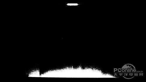 为了让用户更加清晰看到显示器的漏光分布,我们用PhotoShop软件对全黑效果阀值进行调整。白色部分就是显示器的漏光位置。(注意:白色部分只是反映漏光位置,并不是代表实际的漏光情况)
