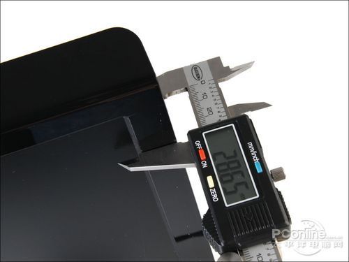 虽然HKC G2631结合LED背光的面板设计,但整体的厚度尚不至于达到轻薄产品的行列,而笔者测量其边框厚度大约为28.65mm,然而适合的厚度可以为面板提供更好的保护。