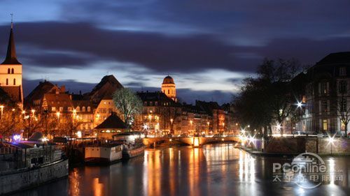 夜景图片中,显示器色彩表现不错,黄色灯光效果强烈,明暗对比也比较突出,色温偏冷,画面偏紫色。