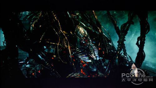 较暗场景中,HKC G2631的明暗对比度显得一般,画面较暗地方的细致呈现不足,而机器人金属光泽还是比较明显,背景烟尘也很到位。