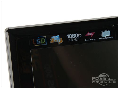 机身边框比较厚实,为大面板提供不错的受力保护。在左上角的边框上,有LED背光、2ms极速响应时间、1080P全高清支持等等,而且屏幕右上方应有产品的型号G2631,从型号也可以看出是26英寸G31系列,而且HKC则以反色醒目印在中间地方。