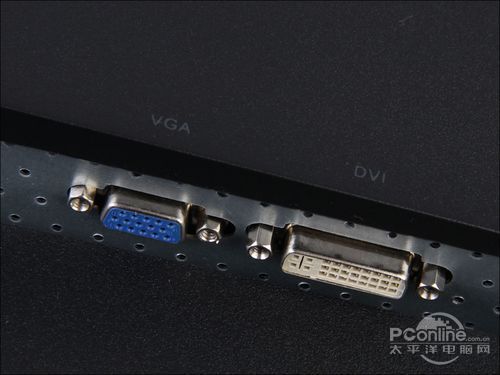 显示器的接口区以隐藏式设计在下方,设有VGA和DVI两个接口,足够大部分显卡使用。