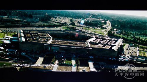 同样的远景,可以看到显示器的静态对比度表现一般,五角大楼的窗户清晰度不足,远近的画面对比还是比较真实的。