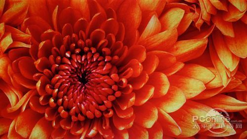 黄色效果图的表现中,显示器黄色感染能力表现略有欠缺,可以看到实测画面的向日葵颜色"不够黄",然而色彩对比还是比较出色。