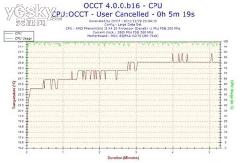水冷散热安装是否成功,效果是否理想,都需要通过实际测试数据来验证,大家在水冷改造完成后也少不了测试。那这次水冷散热效果究竟怎么样呢?通过CPU OCCT测试,可以看到CPU温度降到了27度以下。相比之前用风冷散热时36度左右的表现,水冷散热温度低了接近10度,效果还是非常明显的!