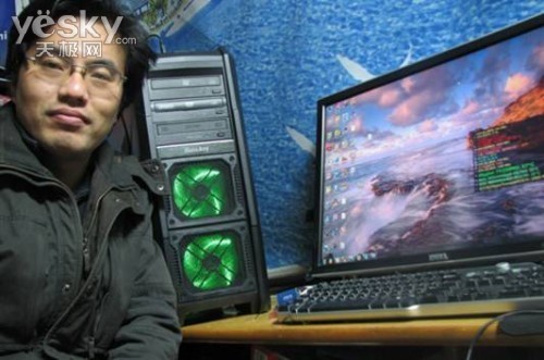 到这里水冷散热改造基本完成。尽管没有看到网友V形手势,不过从表情上可以看出他对自己的水冷改造非常自信。