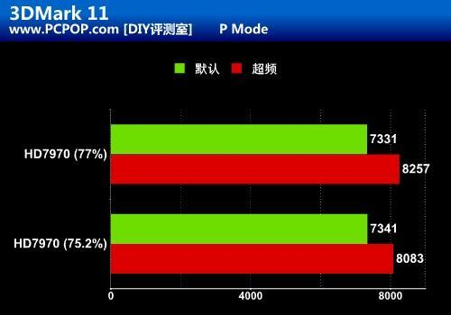 之后进行超频测试,在默认电压下提高显卡核心频率,并以稳定运行3DMark测试为标准,测试结果如下: