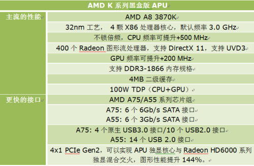 很多喜欢AMD的朋友对AMD早先发布的黑盒产品情有独钟,而这次同时发布的两款超频版APU A8-3870K和A6-3670K可以看作是AMD在其APU系列产品中的一个很好的补充。它的出现不仅弥补了AMD APU系列产品和竞争对手酷睿i5之间的价格和性能空隙,而且其不俗的超频能力也让DIY市场有了更新鲜的活力。