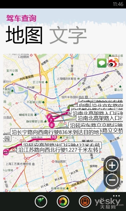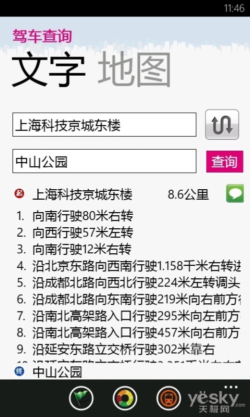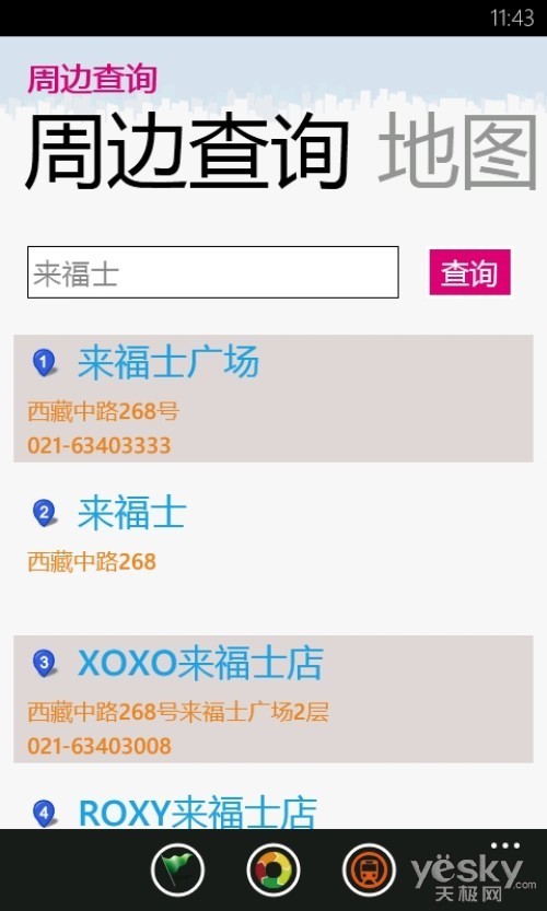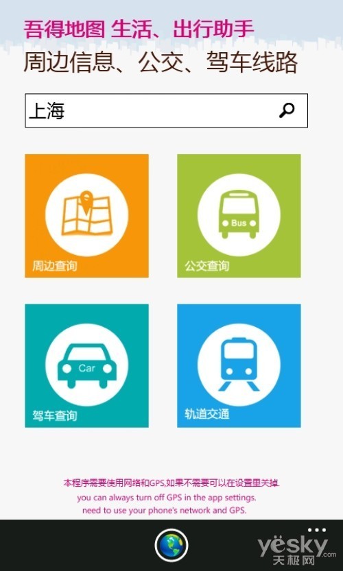 作为微软旗下操作系统Windows Phone,自带了Bing地图,而很用户比较喜欢的Google Map则没有推出官方客户端,所以这里给不习惯自带地图的用户推荐一款吾德地图,其设计风格本身很简洁,但功能倒是一样不少,包括周边信息查询、地铁线路、公交线路、驾车线路等,就目前全国大型城市来看,信息很齐全, 只是没有设计全屏地图功能让人稍感遗憾。
