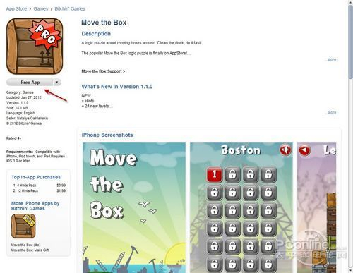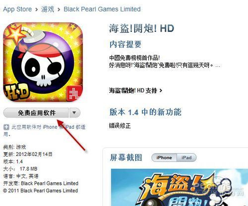 对于免费App来说,用户只需要进入其信息页面,然后点击该APP图标下边的“免费应用软件”按钮,iTunes就会将其下载回本地。