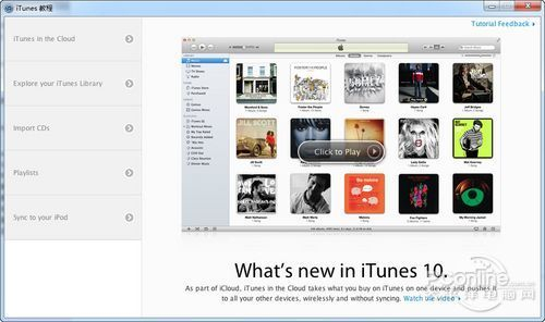 首次运行iTunes有个教程,不过都是英文的,还要考你英文听力,所以对英文不感冒的同学还是看笔者的教程好了。