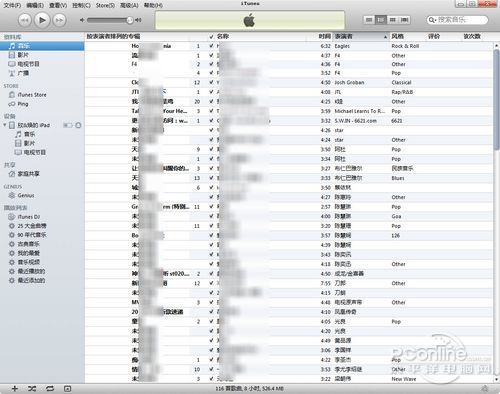 成功添加后会在iTunes资料库的音乐或视频栏中可以查看到这些文件,这里就是iTunes播放列表,也相当于Windows Media Player的媒体库。