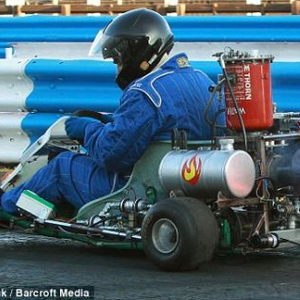 英国电脑工程师阿德里安-班尼特制造的喷气动力卡丁车,加力燃烧室的温度可达到1000摄氏度。班尼特认为这辆卡丁车的时速能够超过100英里(约合每小时160公里)