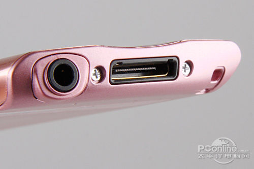 在A864底部为机身仅有的两个接口,分别为3.5mm耳机插孔和数据线接口。笔者试用了一下,插入耳机与数据线后接触感还是很不错的,耳机在插入后与机身成一定角度,并非垂直。