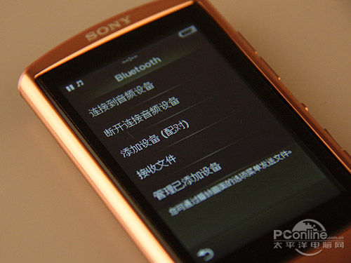 A864主推的蓝牙功能设定中与智能手机的蓝牙管理并没有什么不同,均为与配对设备连接然后无线输出音频信号的传输方式,经测试传输20M左右的FLAC无损音频格式文件能够流畅播放。
