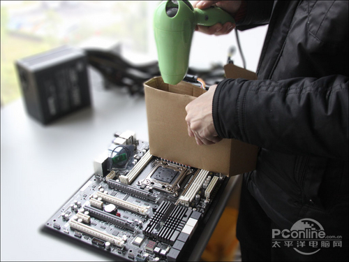 “变色龙”和感温数显的原理是在散热片中添加了热敏材料,通过颜色的变化反应温度高低。最后笔者采用了最原始的方法——使用电吹风从外部加热散热片。