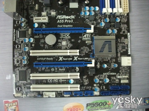 华擎A55 Pro3提供了2条PCI-E X16,支持双显卡交火,A55主板也可以支持APU和AMD显卡交火,提升APU显示效能。扩展还提供了PCI-E X1和3条PCI,接口相当丰富。
