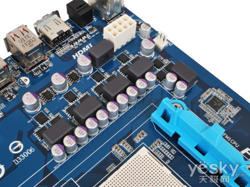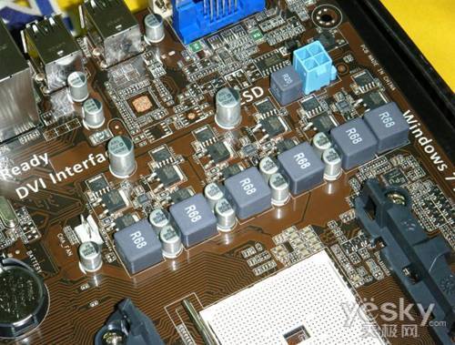 华擎A55 Pro3主板采用扎实的5相供电,而且全部采用高品质的固态电容保证主板长时间使用的稳定性。