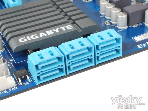 磁盘接口方面,主板上提供了6个蓝色的SATA 3Gb/s接口,相比A75主板去除了对SATA 3.0以及usb3.0的原生支持。同时它仍可以支持RAID模式,接口朝向主板外侧的设计也能够避免妨碍搭配较长的独显时使用。