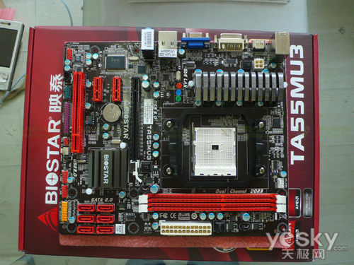 映泰TA55MU3采用M-ATX设计,黑色的PCB板看起来很是稳重,该主板基于AMD A55芯片制造,CPU插槽为Socket FM1。主板采用钛合金散热片,保证了在工作时的稳定性。