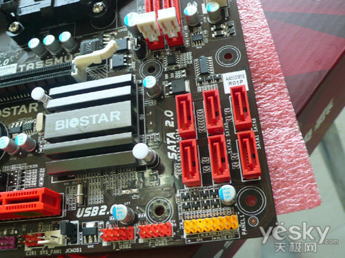 扩展方面,映泰TA55MU3主板提供了1x PCI 插槽,2 x PCI-E 2.0 x1 插槽,1 x PCI-E2.0 x16插槽,6个SATA2接口。