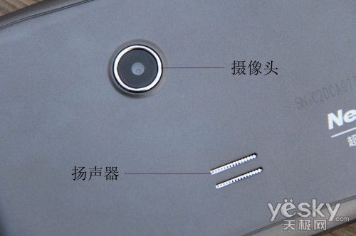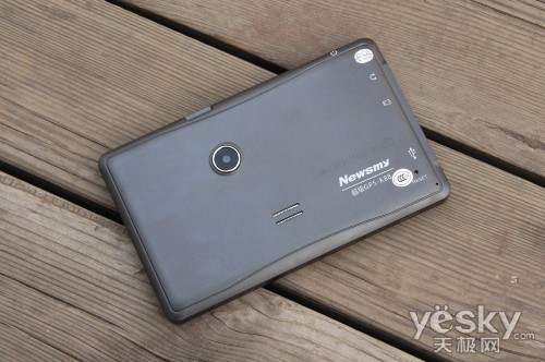 纽曼K88的背面以银灰色覆盖,且具备摄像头,这是以往导航仪不具备的,摄像头上方的卡槽是专门为行车记录仪准备的专用卡槽,并且在纽曼K88的机身背面直接标有SN码。