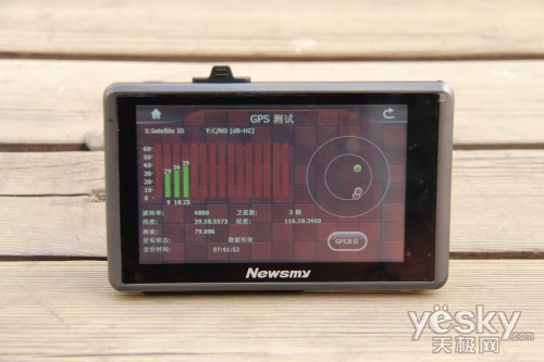 对于一款导航仪,我们首先要进行的就是GPS搜星测试,由于小编实测过程中,选择的地理位置以及天气状况有所影响,纽曼K88首次搜星三颗。