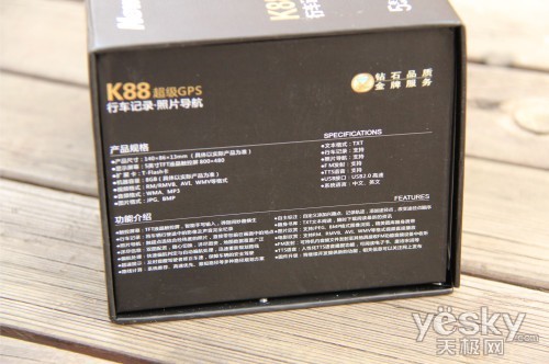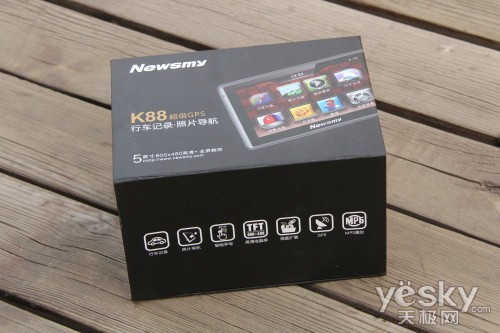 同以往纽曼产品的包装,超级导航仪纽曼K88也是采用硬纸盒进行包装而成,黑色的主色调给人大气恢弘之美,外包装上面标注着纽曼K88的两大功能——行车记录和照片导航。